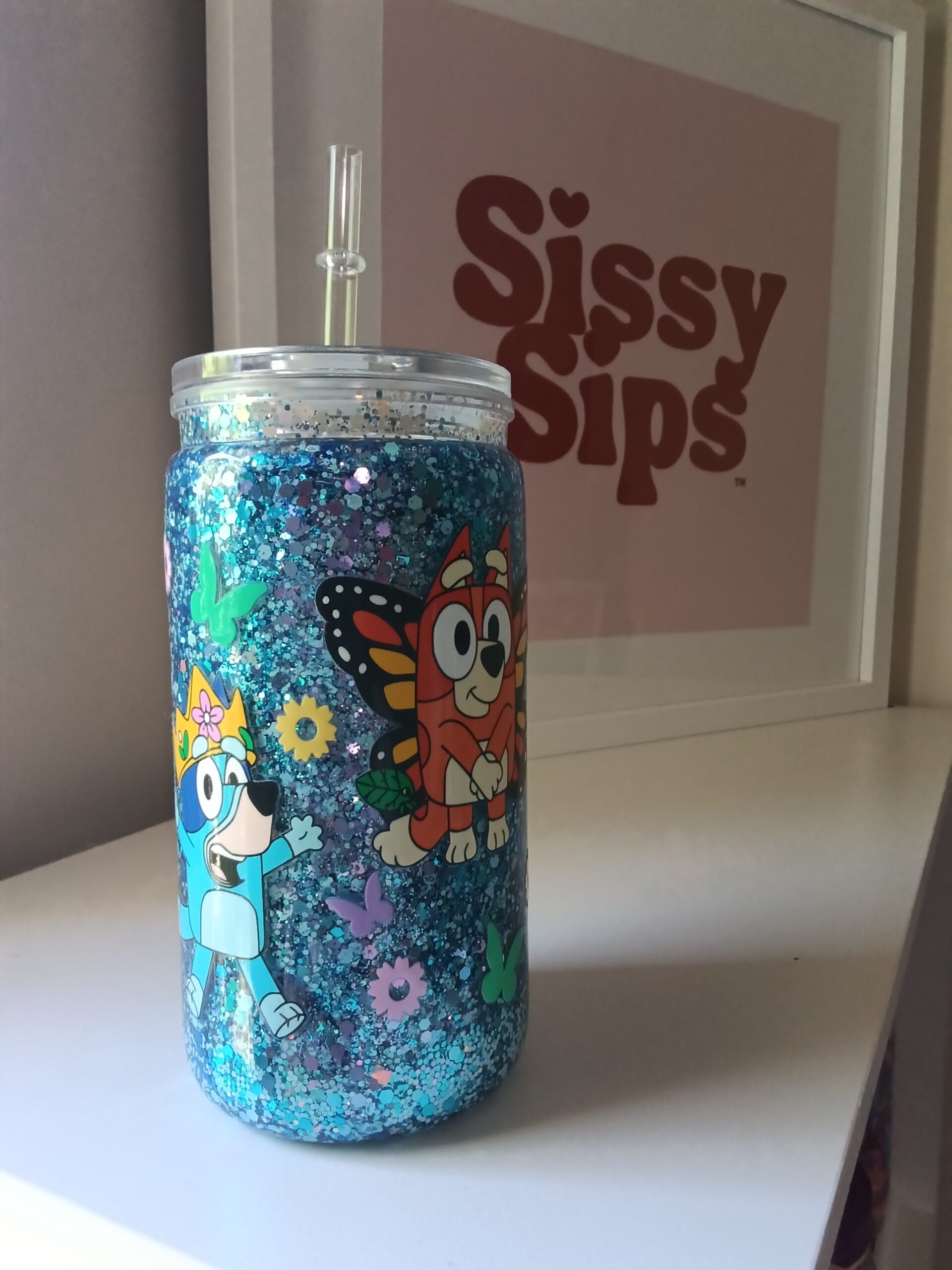 Bluey 16oz snow globe acrylic Pre made cup