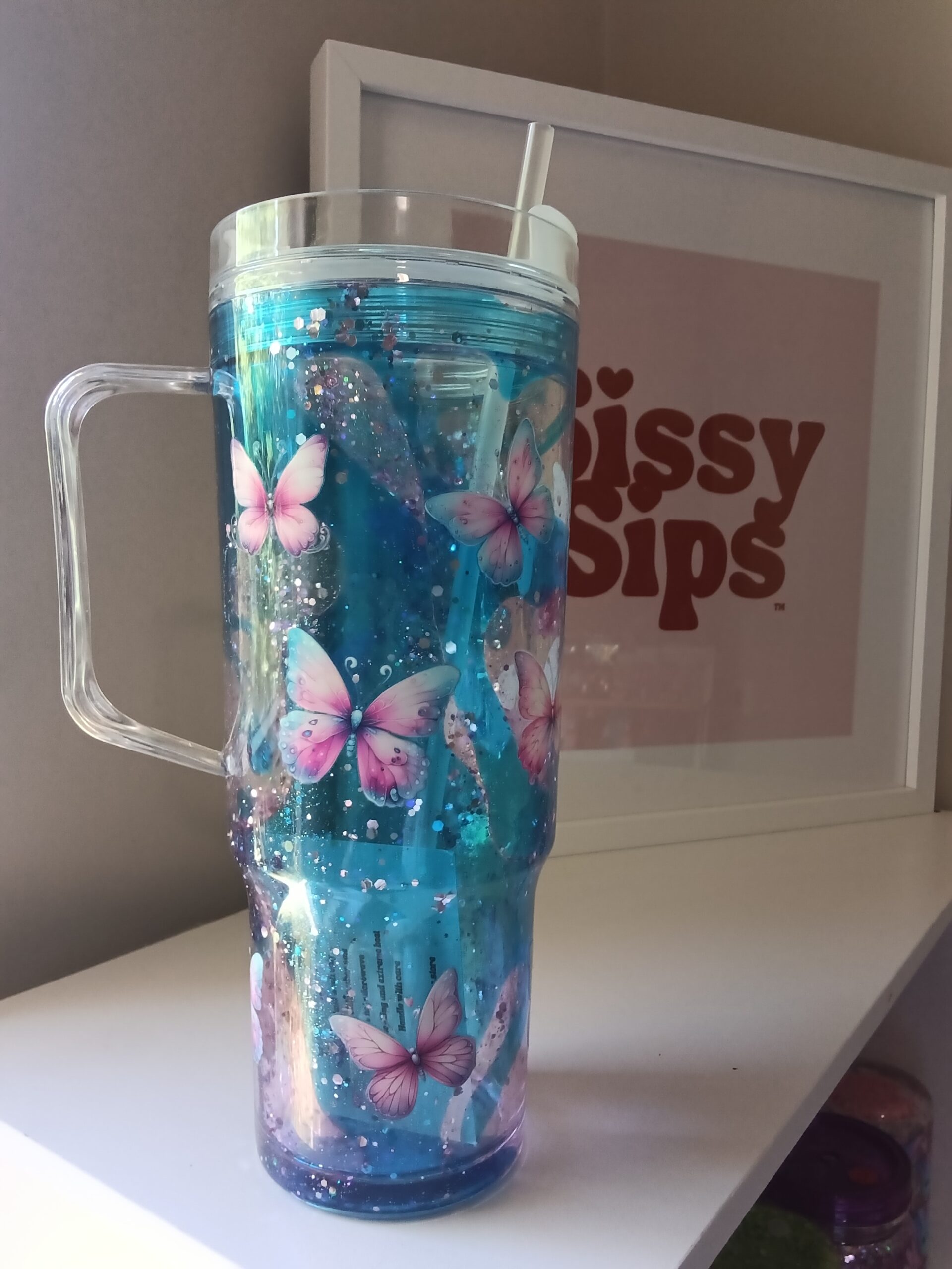 Butterfly blue 40oz Pre made cup