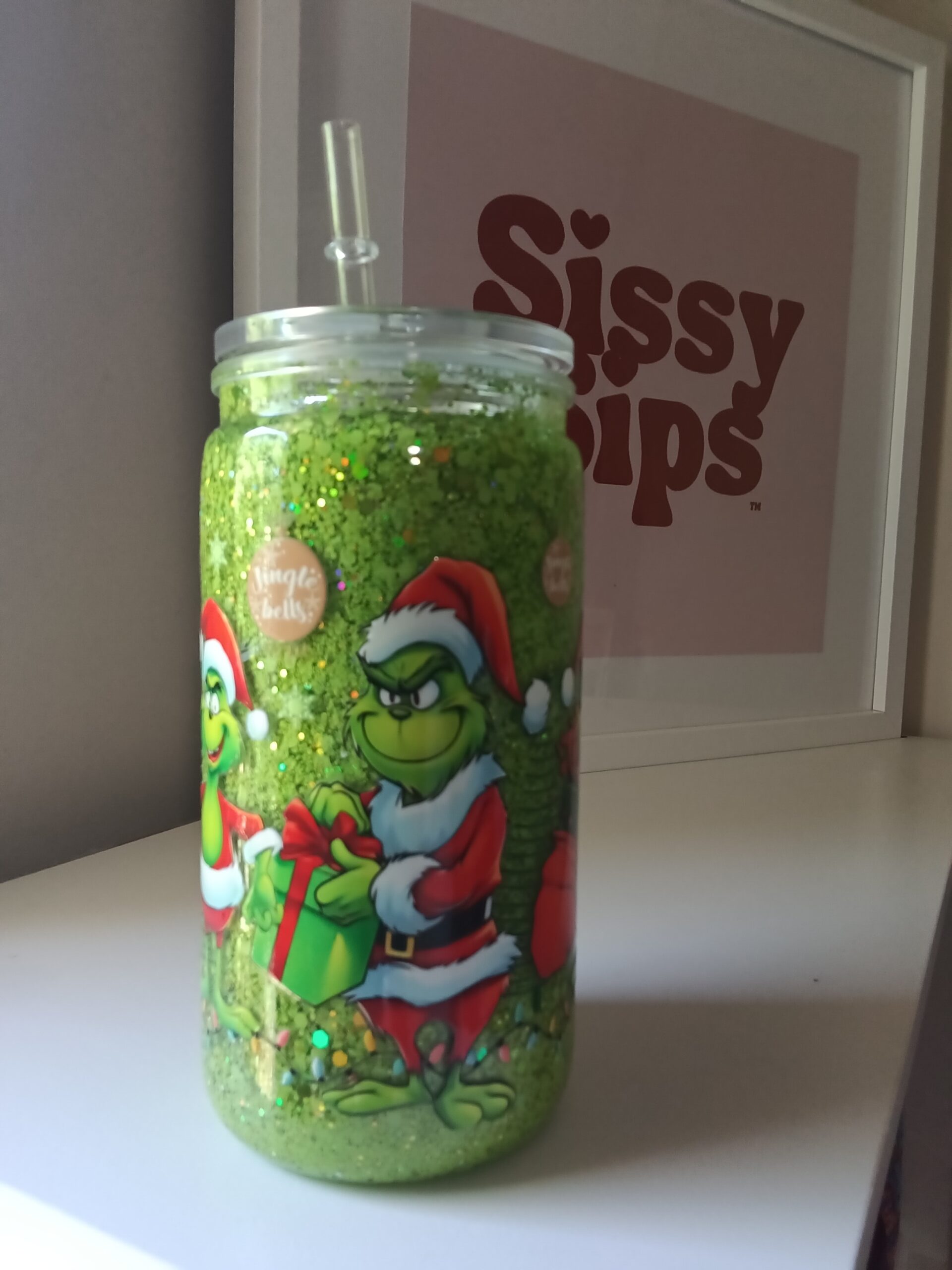 Grinch 16oz snow globe acrylic Pre made cup